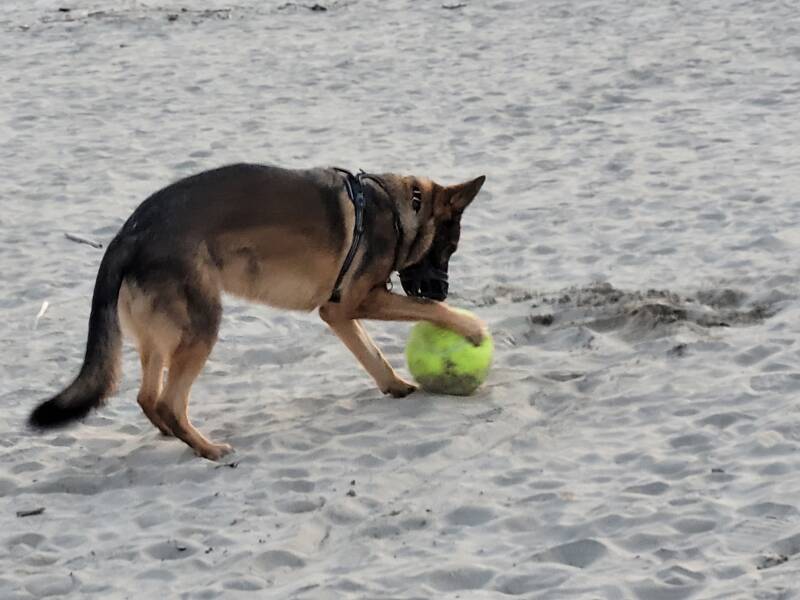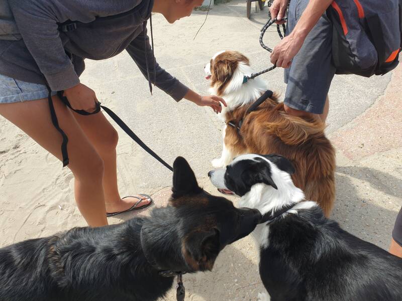 On est allé sur la plage des chiens, afin de poursuivre et renforcer le contact avec les congénères.